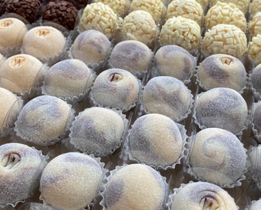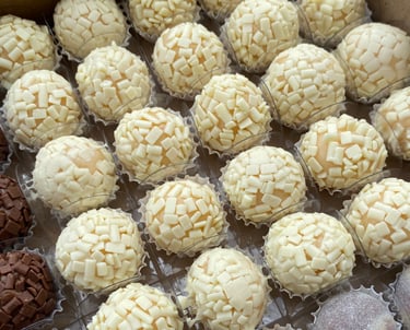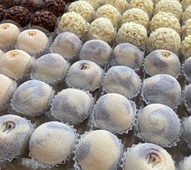 Brigadeiros gourmet artesanais, preparados com ingredientes selecionados e finalizados com cuidado em cada detalhe, oferecendo sabor e cremosidade incomparáveis.