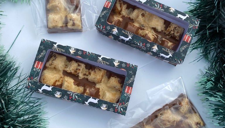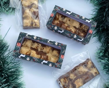 Mini barra de chocolate artesanal, feita com ingredientes selecionados e acabamento delicado.
